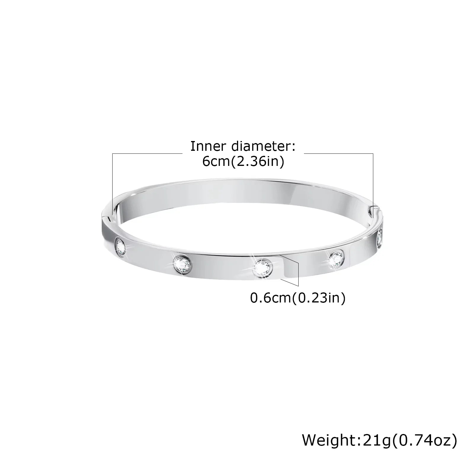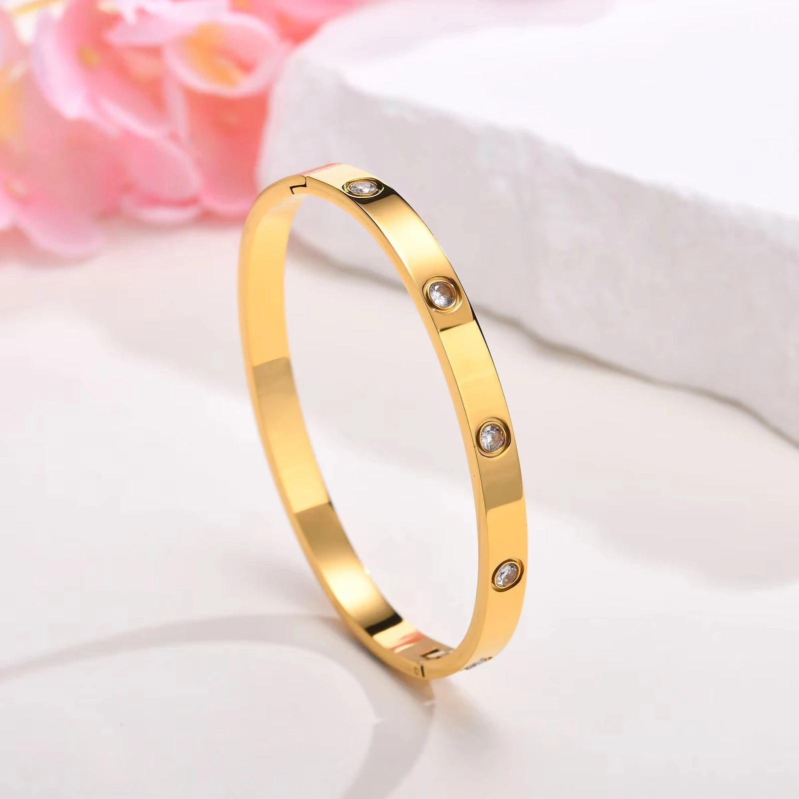 Luxury Stainless Steel Bracelet for Women, Gold Plated Cubic Zircon Bangle Bracelet, High Quality Waterproof Jewelry Gift
